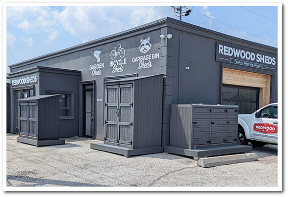 Drop by our shop in the west end of Toronto (2566 St. Clair Ave West) and see some of our sheds. We're open Monday through Friday, typically from 7AM to 5PM, and by appointment on Saturdays. Sometimes we're out on deliveries so give us a call if you want to set up a specific time. Most of our models are on display outside of our shop if you just want to drop by and have a look.